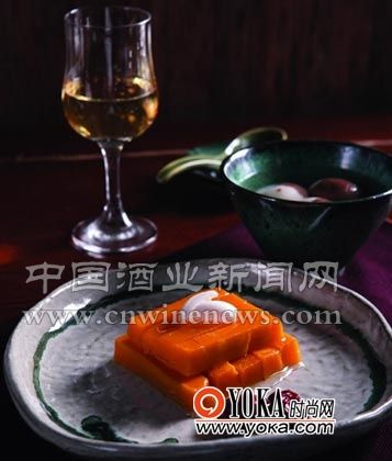 甜品:南瓜蒸百合、江石元宵配云岭冰酒
