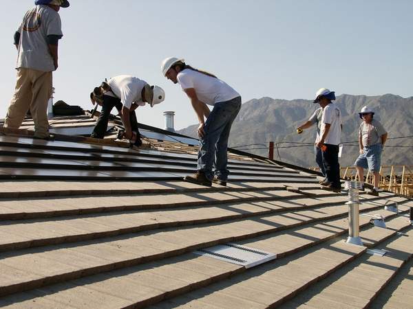 Photo via Shea Homes Technicians complete installation of a solar power system on a home being built in La Quinta.