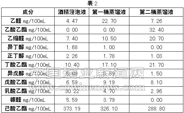 3.2 用美国HP5890型气相色谱仪对浸泡液和前两桶蒸馏液进行分析,测得其液体中所含的成分(表2)。