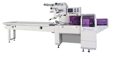 ②SE5000的3轴伺服系统则不同,3个伺服电机可以分别单独运行和同步运行。端封的变速运行,完全由伺服电机变速运转实现。这样,就能够完成许多特殊功能,如:空袋防止、包物错位端封不切等。在节省包材、包物上也具有很大的优势。并且,机械装置也减少了很多。