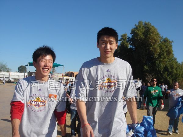 《华夏酒报》记者看到,在Cesar Chavez社区学校,来自NBA的这些“大牌义工”们起劲的干起了粗活,挖沙坑,填土,栽树。星腕云集的劳动场面热火朝天,一组由3名中国帅哥组成的“劳动小组”特别抢眼。姚明、孙悦与带着“北川梦想”而来的“青啤男孩”被分配搬运木屑添沙坑的工作。