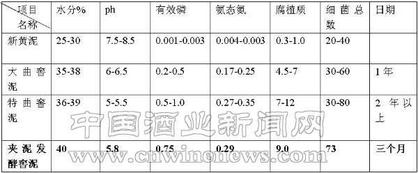 1.窖泥分析的结果(表1)