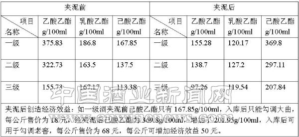 实验数据表明,夹泥前和夹泥后的酒质有明显改善(表2)。
