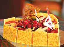 Golden Jaguar adds roses and gift boxes on Feb 14 to its three outlets in Beijing. Enjoy freshly cooked foods, with a limitless flow of fruit juice, beers, Haagen Dazs icecream and desserts. Dinner from 5-10:30pm costs 299 yuan each. Asian Games Village branch: 5128-1888; Wangfujing branch: 6559-8888; The Place branch: 6553-8888.