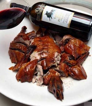Enticing: The Hong Kong style BBQ duck is paired with the Toro De Piedra Reserve Cabernet Sauvignon.