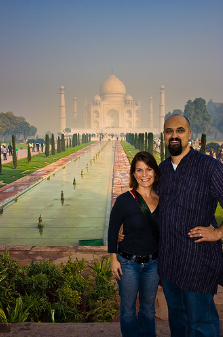 We chose to wear the traditional Indian wedding attire, which meant two very different outfits for both Ryan and I. For Ryan, he wore an orange silk long sleeve shirt which fell to his mid thigh, along with silk pants that were ridiculously tight around the ankles and huge around the tuckus - allowing for ample space to grow when eating from the 20 foot long buffet. For me, I wore a bindi (a dot or jewel placed on the forehead between the eyebrows that historically signified a woman’s age, marriage status, religious background or ethnic affiliation; however, the red dot still signifies marriage to many women), a silk hand-embroidered tunic that also fell to my knees, a long bead embroidered scarf, silk genie pants that where relatively baggy throughout, hands decorated in henna patterns of swirls, leaves and flowers, along with colorful bangles.