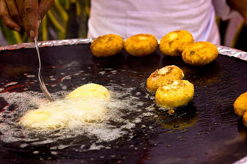 As the wedding party was primarily from West Bengal, known for its non-vegetarian cuisine, we were privy to a wide variety of meat dishes including chicken and mutton (not lamb, as elsewhere, but goat)! Bangladeshi cuisine is influenced by Afghan and Persian, North Indian cuisine also features the use of the ¡°tawa¡± (similar to a grill) for baking delicious flat breads like roti (crispy and thin) and paratha (thicker and oily) as well as tandoor (a large wok placed on top of hot coals) for baking breads such as naan (commonly found in most Indian restaurants internationally) and kulcha. Other breads like puri and bhatoora, which are both deep fried in oil and served alongside main dishes.