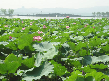 Hangzhou in Zhejiang Province is a famous tourist city. Although not big, it has a concentration of more than 40 scenic spots, which would take at least a week to visit. The 6-square-kilometer West Lake is the pride of this provincial capital city and most sites of interest are around it. Unlike the man-made lakes of other cities, West Lake is natural and its sights are delightful, no matter what the season. Scholars and poets have left a legacy of rhapsodic poetry and prose after visiting the lake, and some settled, or stayed on to live the life of a hermit.