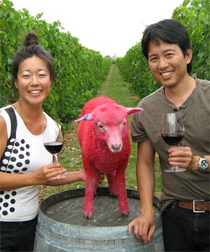 Ohsawa will have a dyed-red sheep named "Pinot" on display at the Triangle Red tasting centre in Ngatarawa Rd.