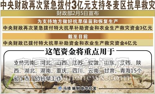 中央财政紧急拨付3亿元支持冬麦区抗旱救灾