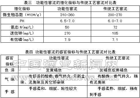 (5)没有把过磷酸钙、尿素等与黄泥等堆积起来发酵。这样做会因为缺少老窖泥培养液,而使发酵后的人工窖泥带氨臭味。所产窖泥与原工艺人工窖泥质量对比情况见表三、表四。