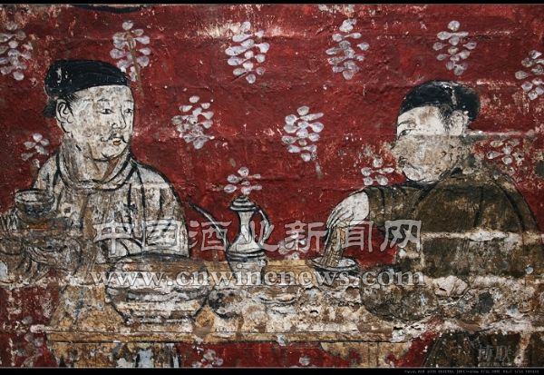 这批古墓群建筑之精湛,绘画与砖雕之精美为历年汾阳地区考古发掘罕见,特别值得关注的是,在两个最豪华的古墓中发现了两幅带文字的贵族饮宴图,一幅是两个仆人在清洗酒器、酒具,饮文章来源华夏酒报酒器与盛酒器放在桌子中央:另一幅为仆人拿着贮酒器与温酒器等候为主人斟酒。这两幅图画与其他砖雕图画一样大气、精美,使发掘专家赞叹不已。最值得一提的是,这两幅绘画中都有酒器的形象,是不可多得的研究汾阳地区古代饮酒器的图像资料,同时也为汾酒集团研究古代酒器发展过程提供了帮助。