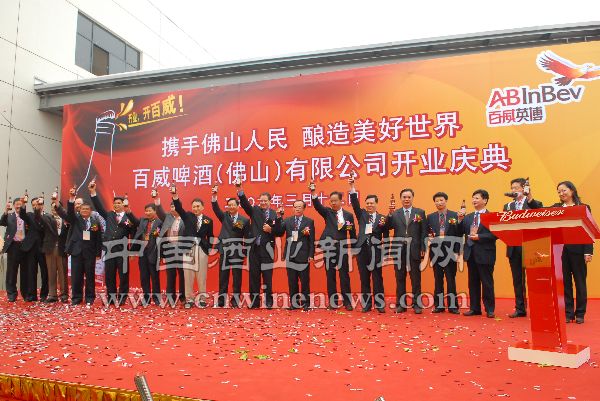 3月12日,由百威英博啤酒集团斥资近6亿元兴建的百威啤酒(佛山)有限公司正式开业投产。百威英博啤酒集团亚太区总裁傅玫凯、中国区总裁程业仁等相文章来源华夏酒报关人士出席了投产仪式。