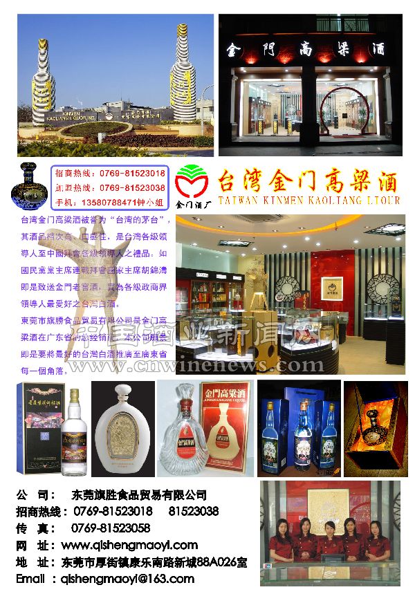 3、经销加盟店店主要开面积不小于30至50平方米的专营金门高粱酒的店,店址要在党政办公处附近或高档消费商业区。