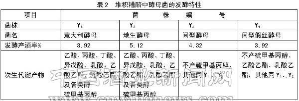 我们从酱香堆积糟醅中分离到若干株酵母菌,经分类鉴定,它们分别归属于意大利酵母、地生酵母、酿酒酵母、间型假丝酵母等。这些酵母菌不仅具有较高的发酵力,还同时代谢产生高级醇、有机酸及酯类物质,尤其是意大利酵母、地生酵母,可将蛋氨酸转化为硫甲基丙醇、硫甲基丙醛等芝麻香味物质(表2)。