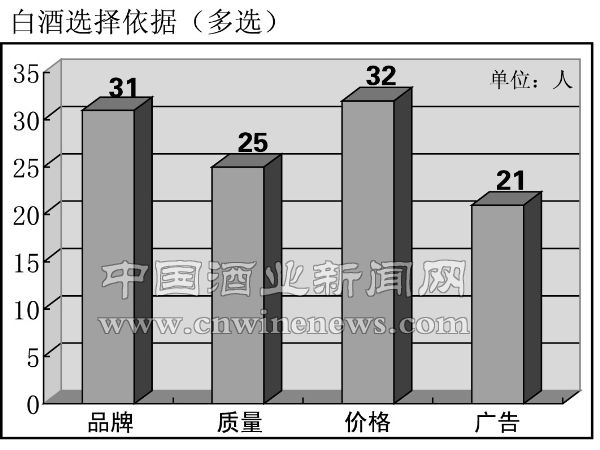 (注: 在调查中主要访问了超市里正在货柜前选酒者,酒店是正在喝酒用餐者,年龄30岁以上者,共调查了32人。)