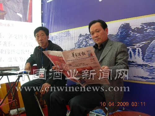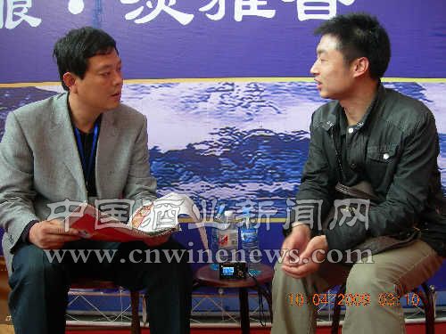 百粮春酒业公司销售总经理孙德强(左)向《华夏酒报》记者就本次出版的山东专刊畅谈了自己的观点和建议。
