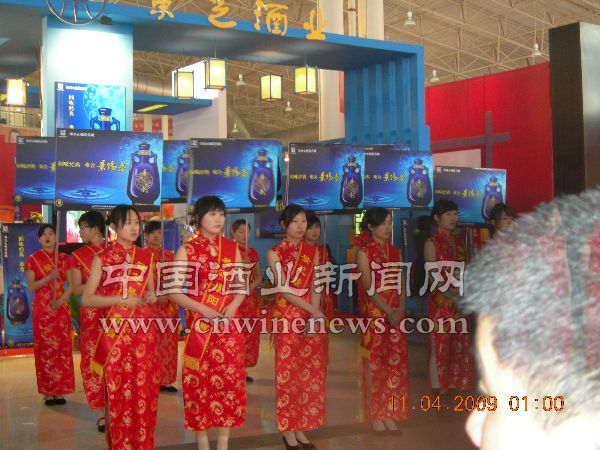 山东景芝酒业公司组织的礼仪队伍向与会者展示公司形象