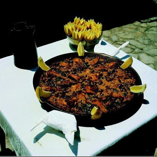 特别提示:真正地道的海鲜饭米饭硬度适中,绝不会夹生。由于海鲜饭太过流行,旅游景点的餐厅都能吃到,西班牙人(当然除了瓦伦西亚人)本来就不太擅长于做米饭,因此提醒大家为了不影响期望值,吃海鲜饭还是应该去当地人推荐的餐馆。特向大家推荐位于马德里市中心的La Barraca餐厅,各种海鲜饭非常地道,米饭也很Q。还有瓦伦西亚法雅节期间(每年3月中)各社区街道都会举行Paella比赛,不可错过!海鲜饭的传统吃法是用勺子,但是西班牙大多数人都用刀叉来吃,想象一下用叉子吃米饭岂不是很累,不用怕,西班牙人会左手攥着一块面包辅助叉子来吃,大家可以试一下。