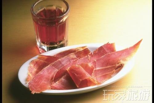 3. 伊比利亚火腿(Jamon iberico): 西班牙美食经典,也是我的最爱!。用山地散养而且只喂食地中海橡果的黑猪制成的火腿风味独特,可以直接生吃。上好的火腿配面包,再抿一口西班牙红酒是体验西班牙美食的最佳方式。真空包装的火腿片被很多人列入西班牙旅游购物清单。买的时候一定要认准伊比利亚、黑蹄猪(pata negra)、5颗橡树果(5 bellotas)标志才是品质最好的火腿,才不会令人失望。吃之前一定要提前从冰箱里拿出来让油化一化再打开包装吃,否则影响口味。当然我有幸吃过的最好吃的火腿是在西班牙南部Huelva省的Jabugo小镇,当时去参观当地的一家最著名的火腿厂,厂家安排我们吃现切的火腿配上南部地区的雪莉酒,真是人生之顶级享受啊!