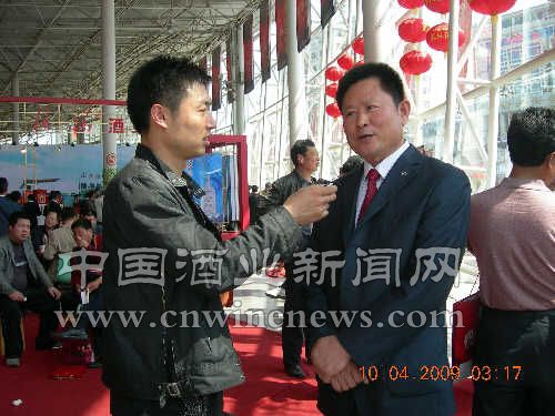 山东天地缘酒业有限公司总经理王公淼(右)正在接受本报记者的采访。