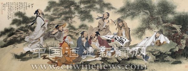 颓废与豪放,是中国文人在酒海沉浮中最为显著的两极。在中国历史上,虽然不乏以刘伶、阮籍等“竹林七贤”为代表的颓废消极,更多的则是以李白、张旭等“醉中八仙”为代表的个性张扬和豪情狂放。唐朝大诗人李白酒狂至极,他斗酒诗百篇,不是“三百六十日,日日醉如泥”、“一日须倾三百杯”,就是豪饮“巴陵无限酒,醉杀洞庭秋”,甚至“天子呼来不上船”,可谓是放诞任性,嗜酒若狂。可以说,酒已融入他的血液之中,成为生命中不可或缺的一部分。李白的“诗酒英豪”,更成为中国古代文人饮酒的主流文化。