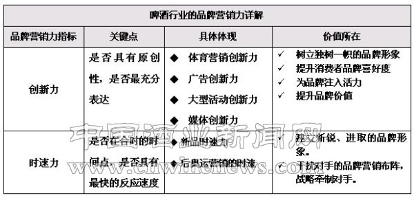 啤酒从属于快销品,快销品的消费特点决定了,其品牌营销的成功与否取决于两大因素,即:品牌创新力和营销文章来源华夏酒报时速力。而这两者的综合能力则反映了一个企业的品牌营销能力。如下图所示: