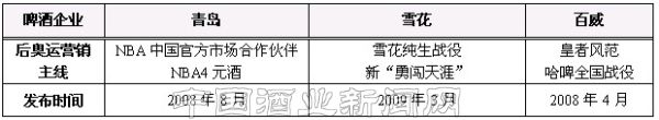 青啤无疑是目前为止业界最成功的后奥运营销受益者。正式成为NBA中国官方市场合作伙伴后,青啤第一时间换下了产品颈标上的奥标组合,NBA的组合标取而代之。在08年10月,还借NBA中国赛广州站,打出了NBA传播第一枪。接着在北京站、厦门马拉松等大型活动上,NBA都成为最热点的传播元素。