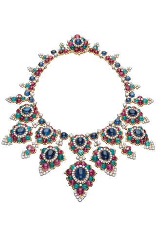 这款BVLGARI宝格丽70年代风靡全球的高级珠宝项链,便是品牌2009秋冬皮具系列的灵感来源。它将红宝石、祖母绿、蓝宝、黄金完美镶嵌一体,色彩交相辉映、相得益彰,堪称BVLGARI宝格丽的典藏之作。