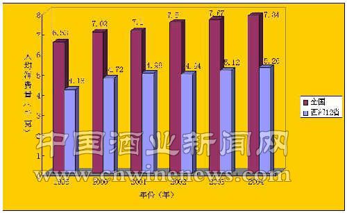 数据表明,目前农村市场对全国消费市场的推动力在不断增强,影响力也在逐渐拓展。取消农业税、减轻农民子女过重的教育负担、加快改善农村的基本医疗条件和加快推进社会主义新农村建设等,对于稳定粮食生产、改善农民的生存环境、提高农民的收入水平具有十分重要的实际意义。在这样一个大背景下,农村消费市场的加速发展是必然的。作为农村居民生活质量提高的一个表现因素,酒类商品也必将随着农村消费水平的提高,呈现出巨大的市场潜力。