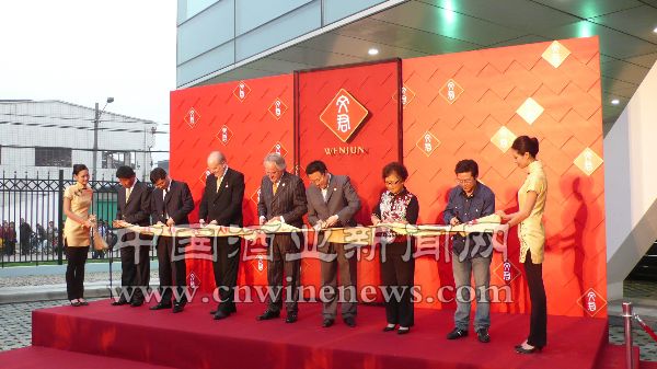 图一:法国酩悦轩尼诗洋酒集团总裁兼首席执行官利法华先生、酩悦轩尼诗亚太区董事总经理贝靖康先生、四川省文君酒经营有限责任公司总裁叶伟才先生等共同为文君酒庄的揭幕剪彩。