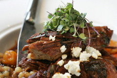 Braised leg of lamb with pasta risotto, feta cheese, and rosemary jus is served as an entree at L'Albatros Brasserie and Bar.