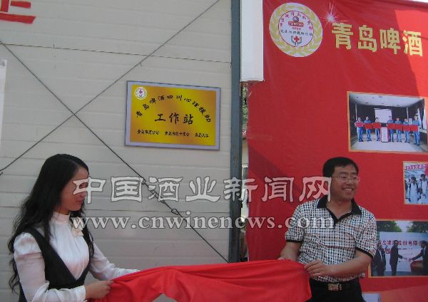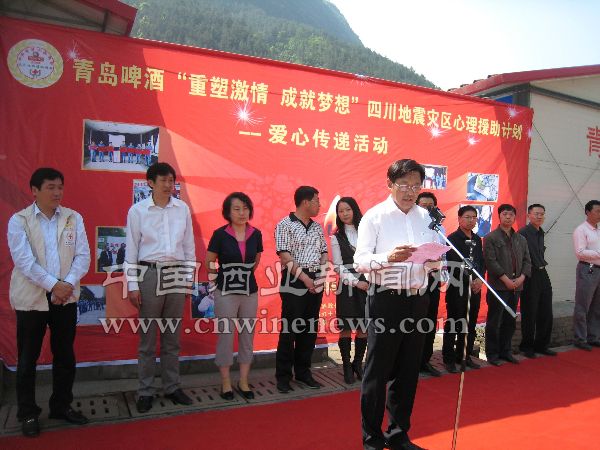 青岛大学的教授们将满载着青啤员工殷殷深情的祝福卡转交到北川县教体局副局长手上,青岛啤酒“重塑激情,成就梦想”心理援助计划揭开了新的一页。