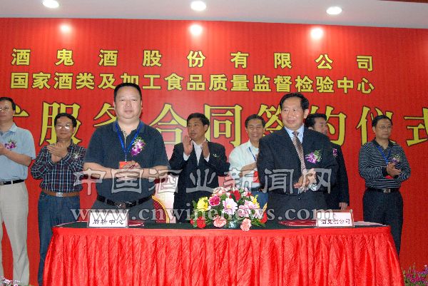 5月9日,酒鬼酒股份有限公司与国家酒类及加工食品质量监督检验中心在湖南省吉首市民族宾馆国际会议厅举行了签约仪式。酒鬼酒公司就白酒生产技术、质量控制咨询服务及其相关专业技术培训等问题与国家酒类及加工食品质量监督检验中心签订了技术服务合同。