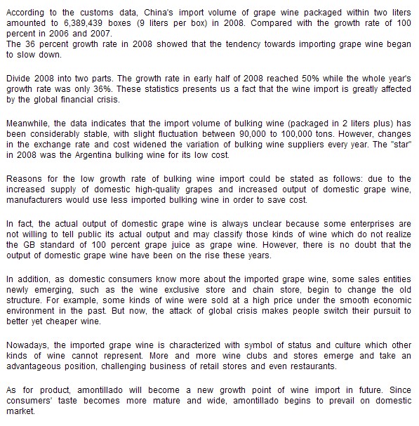 China's growth rate of wine import wolume tends to steabilize