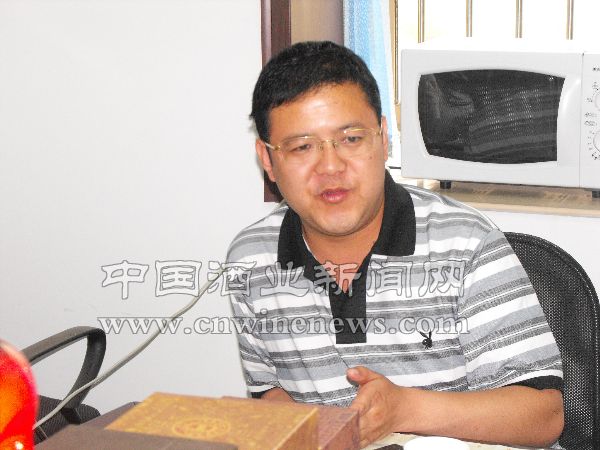 陕西轩辕圣地酒业有限公司总经理吴作鹏正接受记者采访。