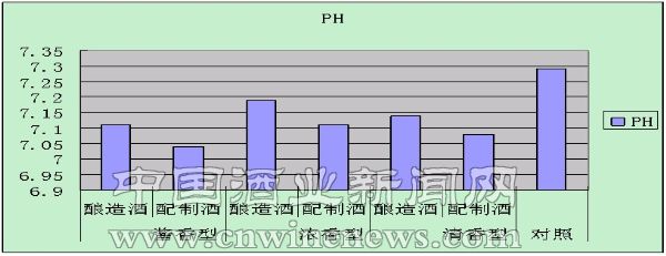 ②从3个图表的共同趋势中我们可以看出,酿造酒醉酒时间长,醒酒时间短。同时,从图6看出喝酒后小白鼠的pH出现了不同程度的降低,而液态勾兑酒比固态发酵酒降低更多。说明液态勾兑白酒从表观上无论化学组成多么一致,风格与风味多么相近,仍无法达到固态酿造酒的质量,进一步说明了固态发酵酒是在其各自独特工艺下发酵酿造而成的,是任何其他方法仿制不出来的。