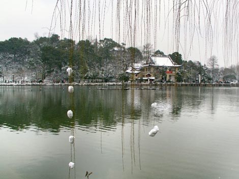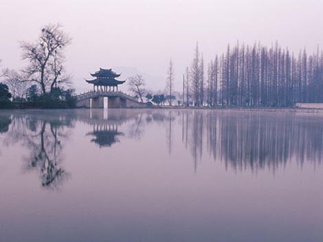 Located in Hangzhou City, Zhejiang Province, the West Lake is also known as Qiantanghu Lake in ancient times and as “Xizi Lake” and “Wulin Water” currently. It was formed under the effect of silt deposition in the Qiantang River. The West Lake covers an area of 5.64 square kilometers and has a perimeter as long as approx. 15 kilometers. The lake surface is divided by Gushan Mountain and two artificial causeways (Su Causeway and Bai Causeway) into five sub-lake regions: Inner Lake, Outer Lake, Yuehu Lake, Xili Lake and Xiaonanhu Lake, all being connected by bridges.