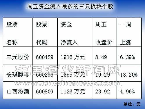 酿酒食品板块一周主力资金净流出约2.52亿元。周五资金净流出约4701万元。周五资金流入最多的三只板块个股分别文章来源华夏酒报是:三元股份、安琪酵母 、山西汾酒 。