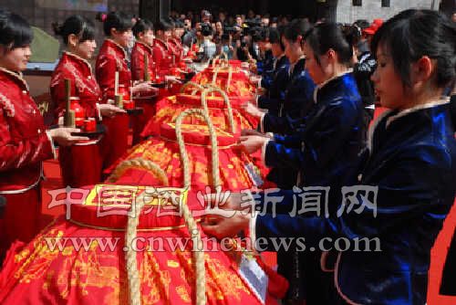 在一年后的同一个地方,2009年3月20日上午,泸州市国窖广场,在充满传统喜庆气氛的威风锣鼓轰鸣之中,“泸州老窖2009·国窖1573封藏大典”正式开启。2009年度封藏大典,继承了2008首届封藏大典的精髓,在白酒历史文化层面进行了更深的挖掘。