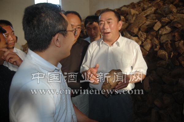 著名白酒专家沈才洪在山东省白酒专家组组长黄业立、徐氏生物工程有限公司董事长徐长磊的陪同下参观大曲生产基地。