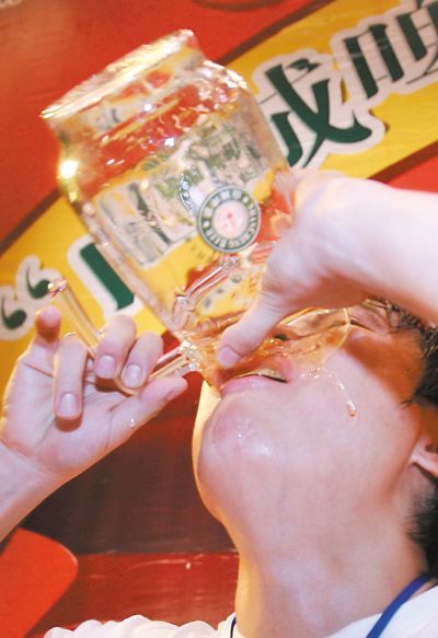 前晚,第十届“山城啤酒杯”啤酒竞饮竞技大赛半决赛在洋人街举行。用“虹吸”式喝法、以4.19秒喝完1000毫升啤酒的福建人黄智荣技惊全场。据悉,当晚胜出的男女各10名选手和6组“知心朋友组合”将参加7月25日的总决赛。
