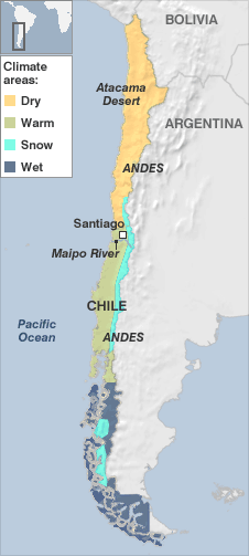 "We are particularly concerned about the impact of global warming on our hydroelectric supplies," he told the BBC. "More than half the energy supply to central Chile comes from hydroelectricity generated by water coming from three basins where there will be much less water."
