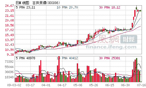 第四次改制有望启动,古井贡酒[0.00 0.00%](000596.SZ)股票应声狂飙。上周收获三个涨停板,大涨35.94%,位居沪深两市涨幅榜首位。