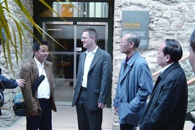 我们采访了正紧锣密鼓筹划今年葡萄节开园仪式的县委常委、县委办主任冯文元。因为一直主抓葡萄产业,他介绍了2006、2007年两届湖南(澧县)葡萄节和2008年的葡萄酒省会新闻发布会及澧县葡萄酒品评会的有关盛况,特别是去年7月27日,湖南省科技厅组织了中国酿酒工业协会秘书长王琦、中法合营王朝葡萄酒有限公司总工张春娅、西北农林科技大学葡萄酒学院院长王华、烟台张裕葡萄酿酒股份有限公司总工段辉、北京农学院食品系教授李美德、中南林业科技大学食品科学与工程学院院长李忠海、湖南省农业厅研究员李建国、湖南省轻工业研究院院长伍伟青、湖南省食品质量监督检测所总工杨代明等国内九位专家对“神州庄园”牌系列葡萄酒进行了鉴定。专家经过精心品尝、认真汇商后一致认为:“神州庄园”牌系列葡萄酒澄清透明、果香浓郁、口感醇厚、酒体完整、典型感强,其酿造技术达到了国内领先水平。