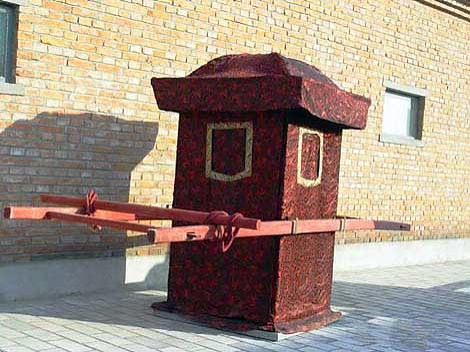 In the world-famous painting of Riverside Scene at Qingming Festival, there are lots of sedan chairs in the streets of the capital city of Bianliang in the Northern Song Dynasty. Those sedan chairs are almost the same as modern ones. In the Southern Song Dynasty, sedan chairs were more widely used. In the Ming and Qing Dynasties, four-person or eight-person carried sedan chairs were developed. And riding in a sedan chair became a fairly usual way to get around. Sedan chairs most commonly used by the people were sedans with plain-color curtains and those with bright-color curtains. The former were for women to travel outdoors and the latter were exclusively for brides to get to the wedding ceremony.