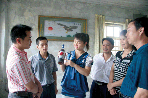 图为钦南区行业办人员在为培训班学员讲解真假酒的识别。本报记者 杨春莲/摄