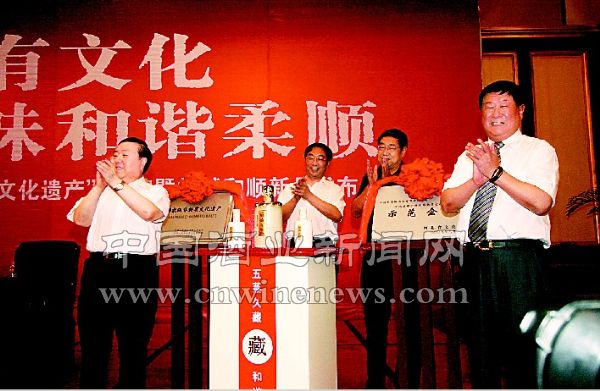 文章来源华夏酒报家级非物质文化遗产”授牌暨板城和顺新品发布会在河北石家庄亚太大酒店隆重举行。图为河北省政协副主席赵文鹤、河北省酒类监督管理局局长汪国庆、河北省白酒葡萄酒工业协会会长范长秀、承德乾隆醉酒业有限公司董事长缪如焕共同为板城和顺新品揭幕。