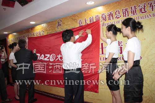 在新形象启动仪式,大周集团董事长周益民先生、意大利驻广州领事馆文章来源中国酒业新闻网总领事PAOLO MIRAGLIA先生率先为大周酒业新形象签名留念。