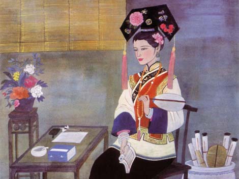 The Man people are brave and athletic. They excel at riding and shooting, which women and children can do as well as men. In the Qing Dynasty, men plaited their hair on the left side and shaved off the hair around their foreheads. Women wore hair pins, earrings and a once piece dress, the Qipao.
